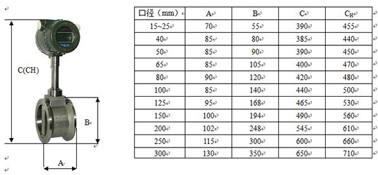 一體式渦街流量計是集流量傳感器、溫度傳感器、壓力傳感器和顯示儀于一體的渦街流量計,具有智能溫度、壓力補償功能,自帶3.6V高能電池或24VDC(通常在需要脈沖信號輸出、二線制4~20mADC輸出或RS485通訊時采用)供電,就地液晶顯示介質(zhì)溫度(℃)、工作壓力(MPa)、瞬時標況體積流量(m3/h)和累計標況體積流量(m3)。