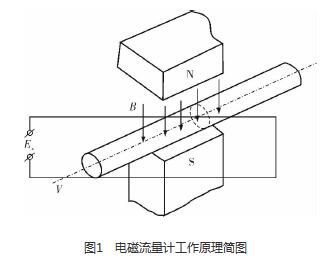 油田污水流量計(jì)廠(chǎng)家是利用法拉*電磁感應(yīng)定律設(shè)計(jì)的流量測(cè)量?jī)x表,用于測(cè)量導(dǎo)電液體的體積流量。根據(jù)法拉*電磁感應(yīng)定律,當(dāng)導(dǎo)體切割磁力線(xiàn)運(yùn)動(dòng)時(shí),導(dǎo)體內(nèi)將產(chǎn)生感應(yīng)電動(dòng)勢(shì)Ex(圖1),方向根據(jù)右手定則確定,感應(yīng)電動(dòng)勢(shì)Ex的大小與磁場(chǎng)的磁感應(yīng)強(qiáng)度B、傳感器管道的內(nèi)徑D和流過(guò)導(dǎo)電液體的流速V成正比,B、D、V三者相互垂直,即Ex=BDV。